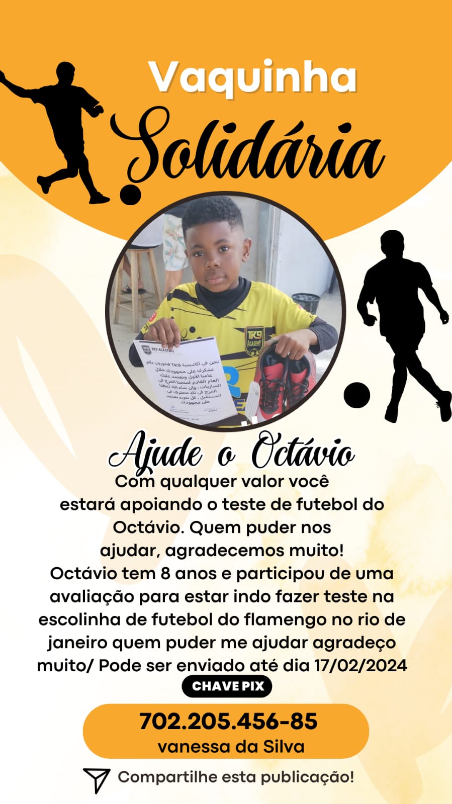 Cada contribuição, por menor que pareça, faz a diferença na jornada de Otávio rumo ao sucesso. Vamos nos unir e ajudar esse jovem promissor a alcançar as estrelas!