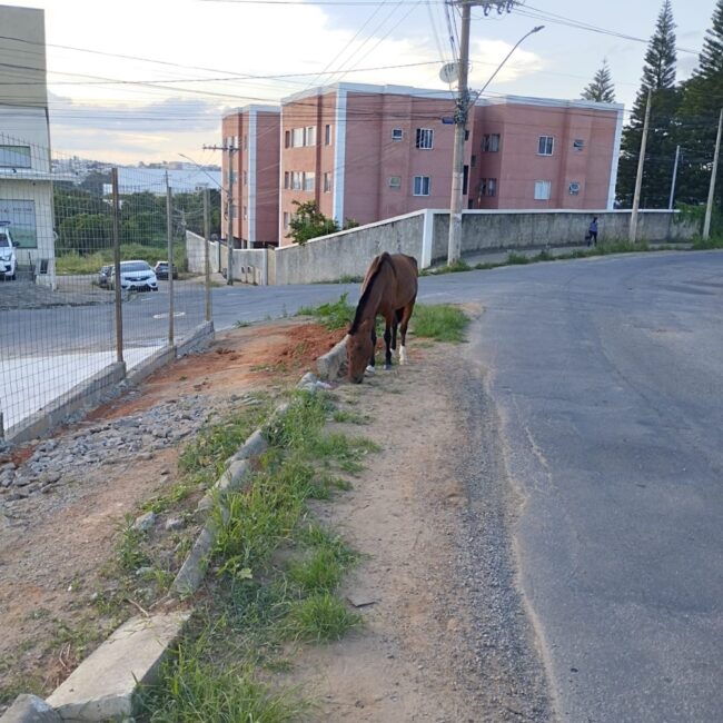 Moradores de Lavras flagraram novamente cavalos de grande porte circulando soltos pela cidade. Os animais foram vistos na entrada do bairro Colinas da Serra e no bairro Monte Líbano, na região da Rua Maria da Conceição Barra Mansa, onde foram fotografados procurando alimento nas lixeiras.