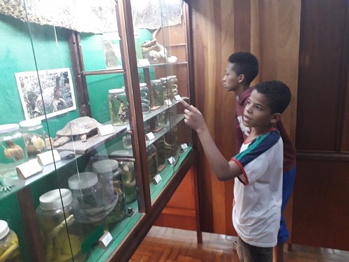 Os alunos seguiram até a portaria e de lá embarcaram no famoso “Mamute”, o ônibus articulado que faz o transporte interno universitário. No Campus Novo eles passaram pela biblioteca, Centro de Convivências, pavilhões de aula e visitaram o Departamento de Zootecnia, onde viram o parto de um porco. Em seguida compartilharam um delicioso lanche nas mediações da capela ecumênica e retornaram ao Campus Histórico, onde admiraram as construções antigas da ESAL e visitaram o Museu de História Natural, um dos maiores de Minas Gerais.