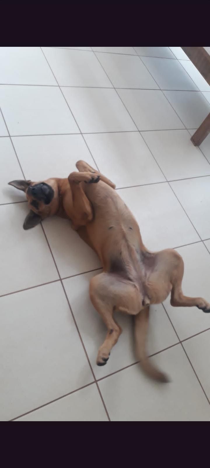Mel é castrada, vacinada e, apesar do diagnóstico, não apresenta sinais clínicos da doença no momento. Ela está saudável, mas necessita de medicação contínua para controlar a leishmaniose e garantir sua qualidade de vida.