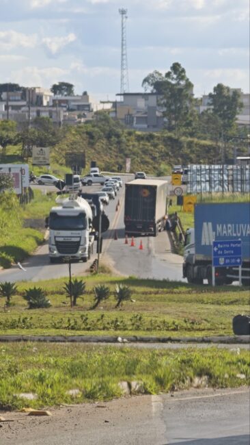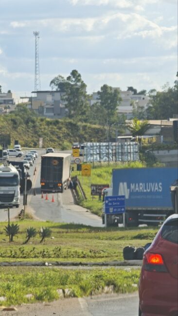 Novas informações indicam que uma carreta com problemas mecânicos está causando transtornos no tráfego da BR-265. O incidente ocorre no trecho após a rotatória do Shopping Cidade da Serra e do Mart Minas, seguindo em direção ao bairro Tipuana. O veículo pesado está parado sobre a rodovia, ocupando uma das faixas e dificultando a fluidez do trânsito na região.