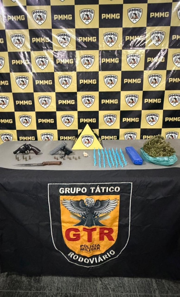 Durante a operação, os policiais apreenderam duas armas de fogo — uma pistola calibre .380 e um revólver calibre .38 da marca Taurus — além de diversas porções de drogas.