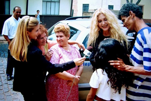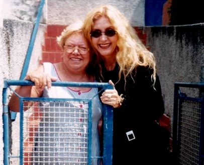 Com a amiga e vizinha de infância, Iris. Emoção da amiga e