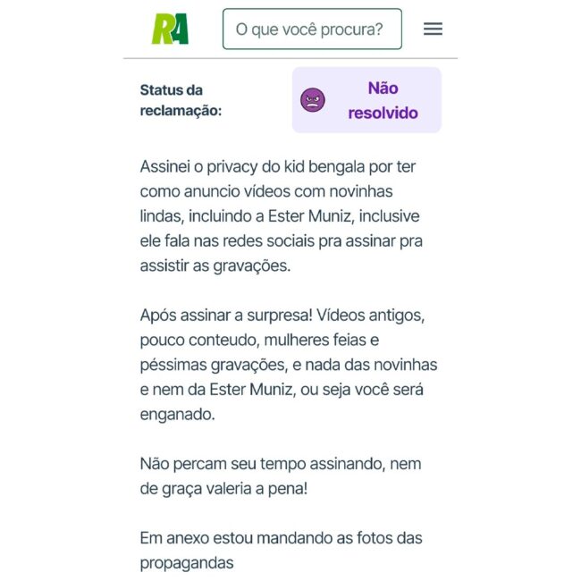 Ao acessar o conteúdo, porém, a decepção foi grande. Segundo o relato no Reclame Aqui, o assinante encontrou apenas vídeos antigos, pouco material novo, gravações de baixa qualidade e nenhuma das mulheres citadas nas propagandas. Ele classificou a situação como enganação total e alertou: nem de graça valeria a pena.