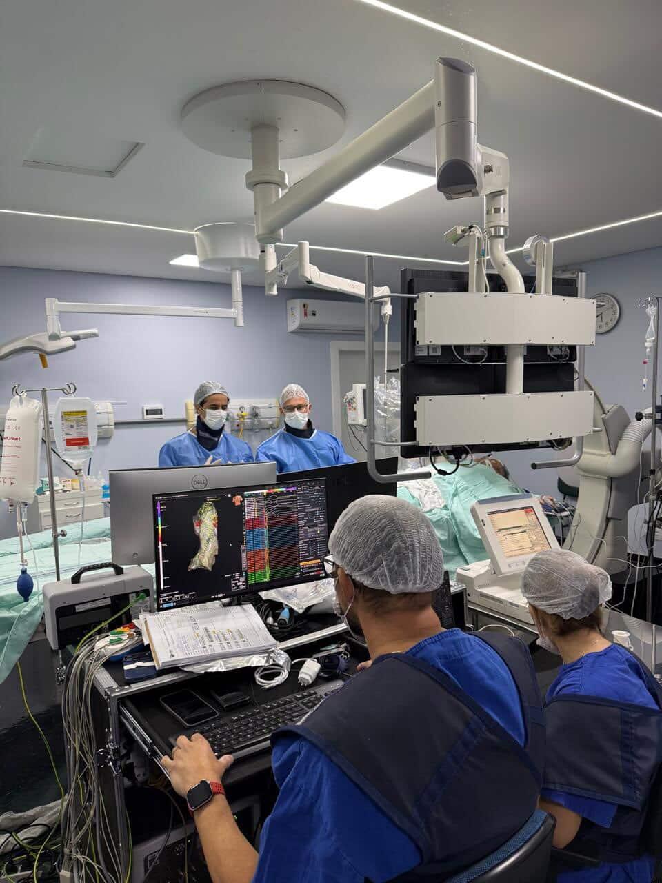 Além das intervenções por cateter, o hospital se destaca no implante de dispositivos como marcapassos, ressincronizadores e cardiodesfibriladores implantáveis (CDI), fundamentais na prevenção de morte súbita. A equipe multidisciplinar, composta por especialistas como o cirurgião cardiovascular Dr. Leandro Furtado Silva e o arritmologista Dr. Ricardo Ferreira da Silva, atua em conjunto com o suporte de ecocardiograma intracardíaco para garantir precisão em tempo real durante os procedimentos.