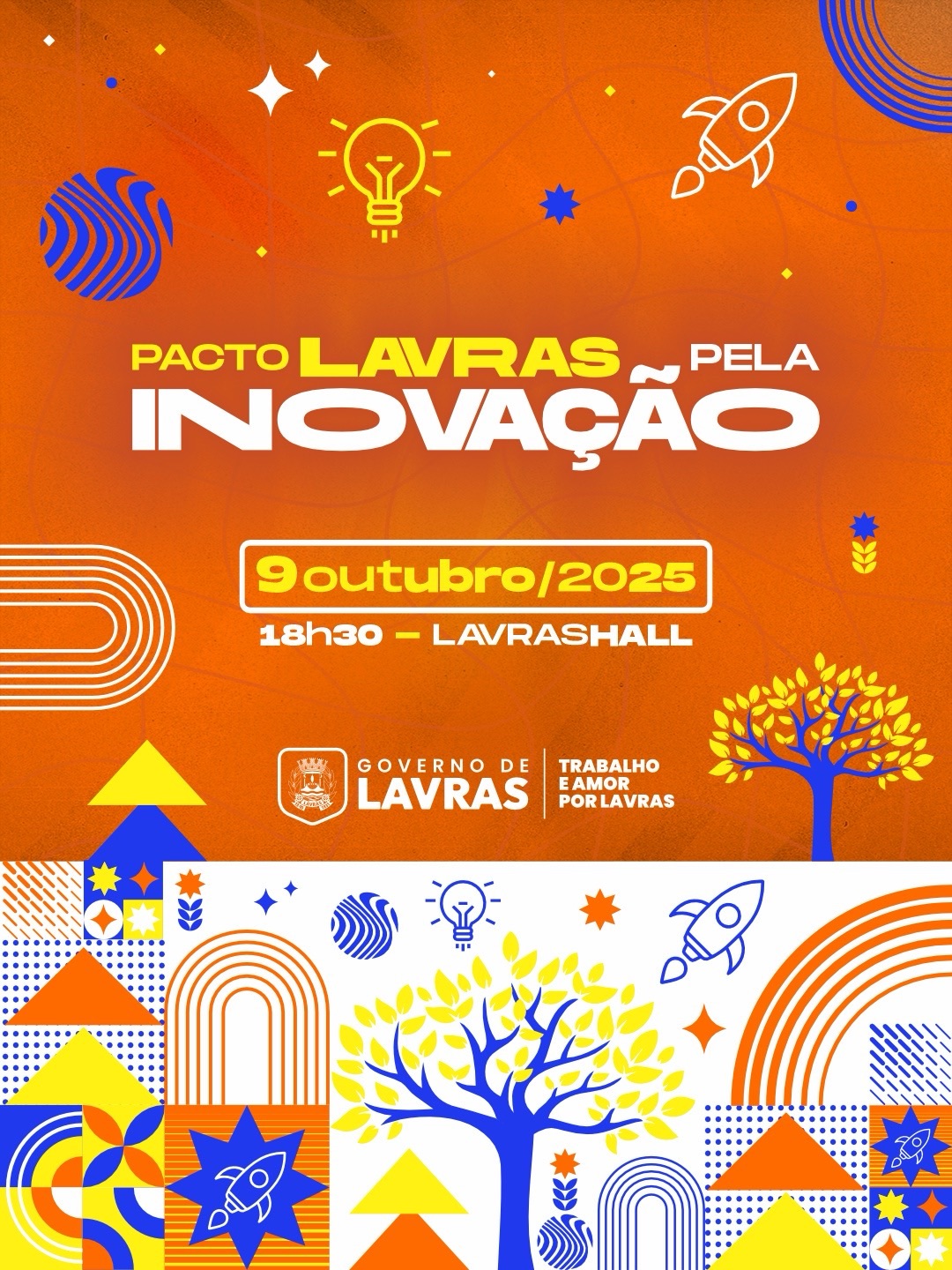 No dia 9 de outubro, às 18h30, no Lavras Hall, será realizado o lançamento do Pacto Lavras pela Inovação, iniciativa que une governo, sociedade civil, empresas e academia para fortalecer o ecossistema de inovação do município.