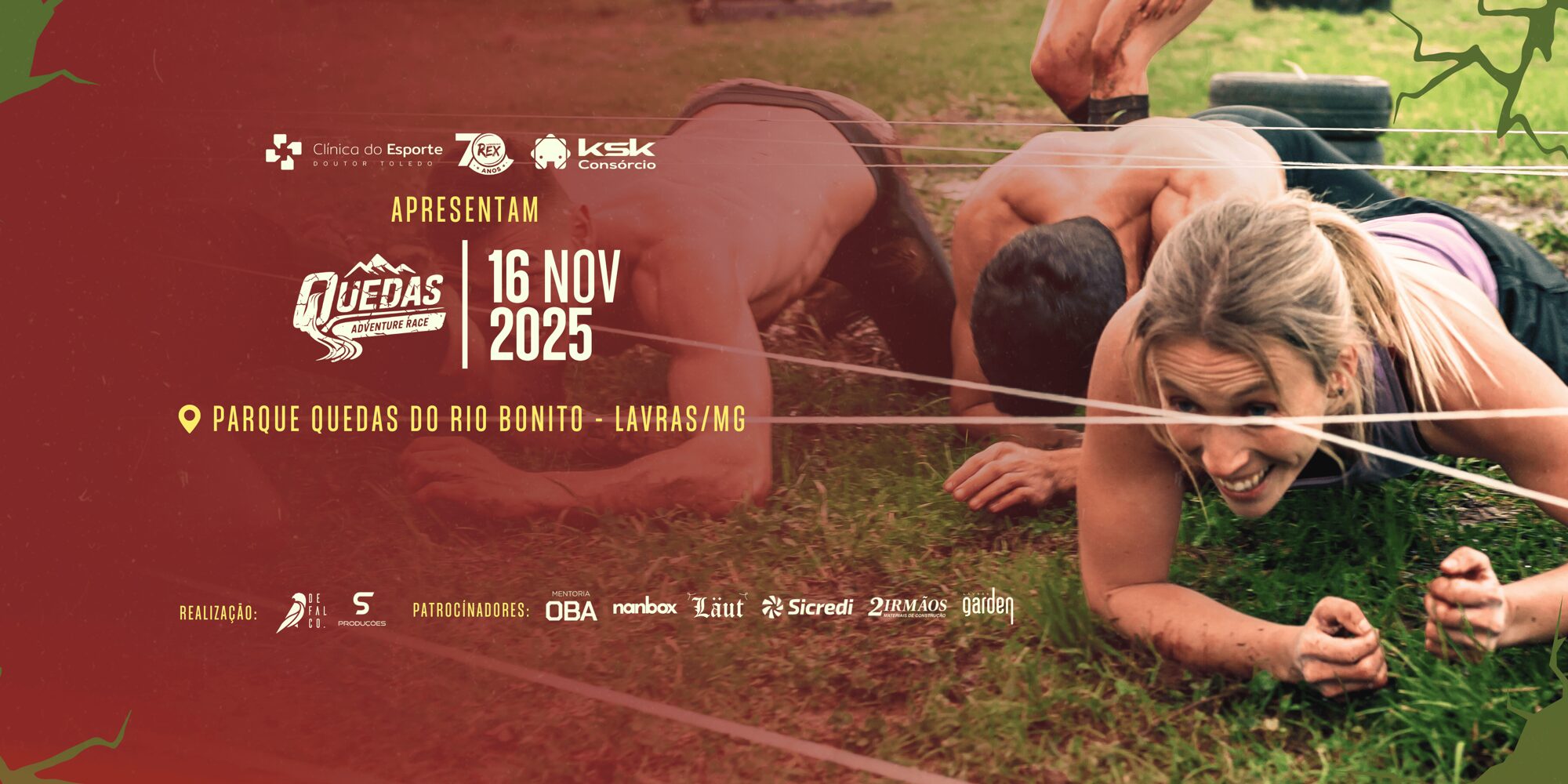 O Quedas Adventure Race é uma realização da Defalco Eventos e S Produções, com apoio e patrocínio de grandes marcas que acreditam no esporte e na superação: Clínica do Esporte, Supermercados Rex, KSK Consórcio, Sicredi, Mentoria OBA, Nanbox, Cervejaria Laut, Lavras Garden Shopping e Materiais de Construção 2 Irmãos.