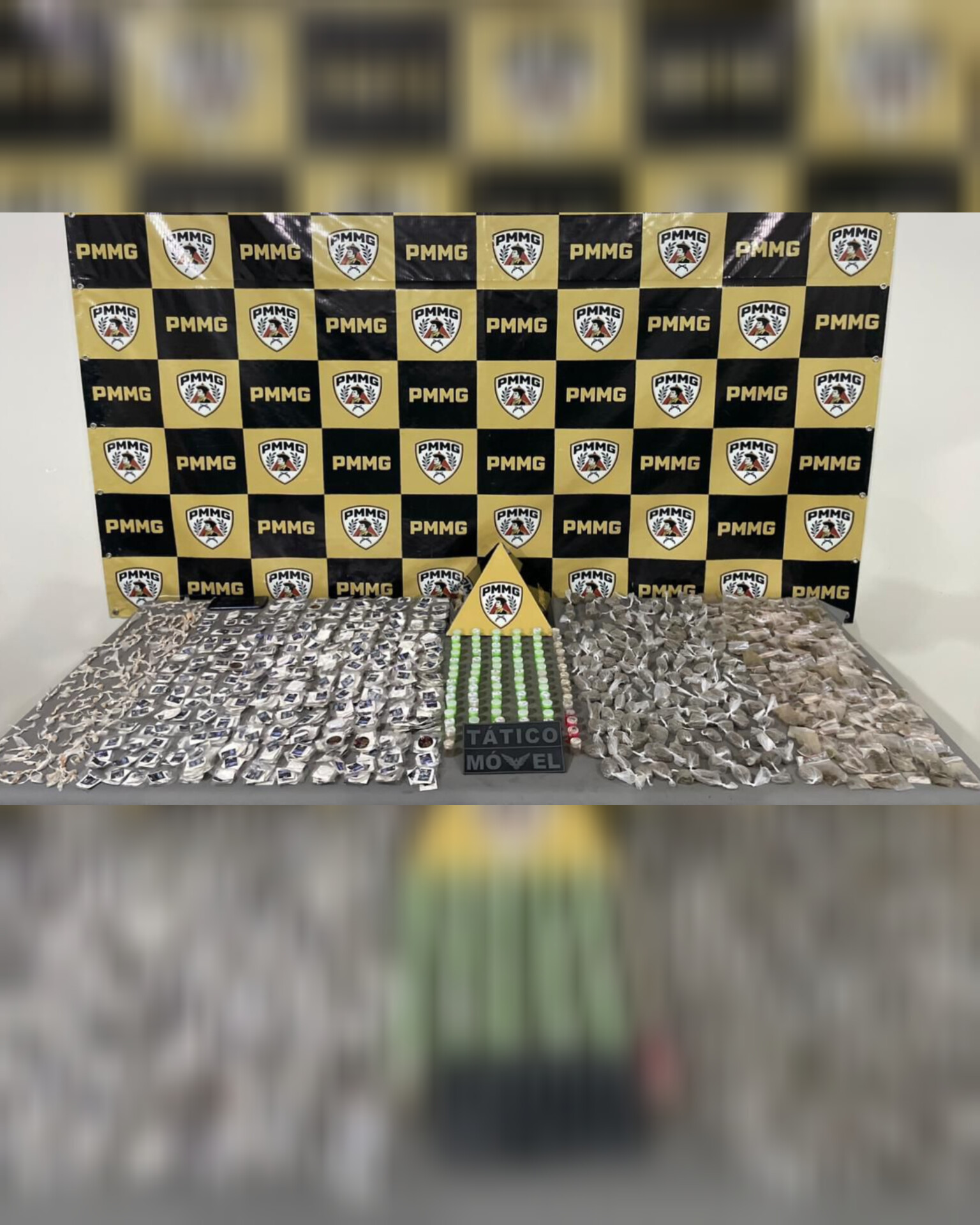 O volume de material apreendido impressionou as autoridades. Foram recolhidos 371 invólucros de maconha, 220 porções de maconha do tipo “Colombian Gold”, 794 papelotes e 75 microtubos de cocaína, além de 261 pedras de crack, 16 microtubos de haxixe e um aparelho celular.