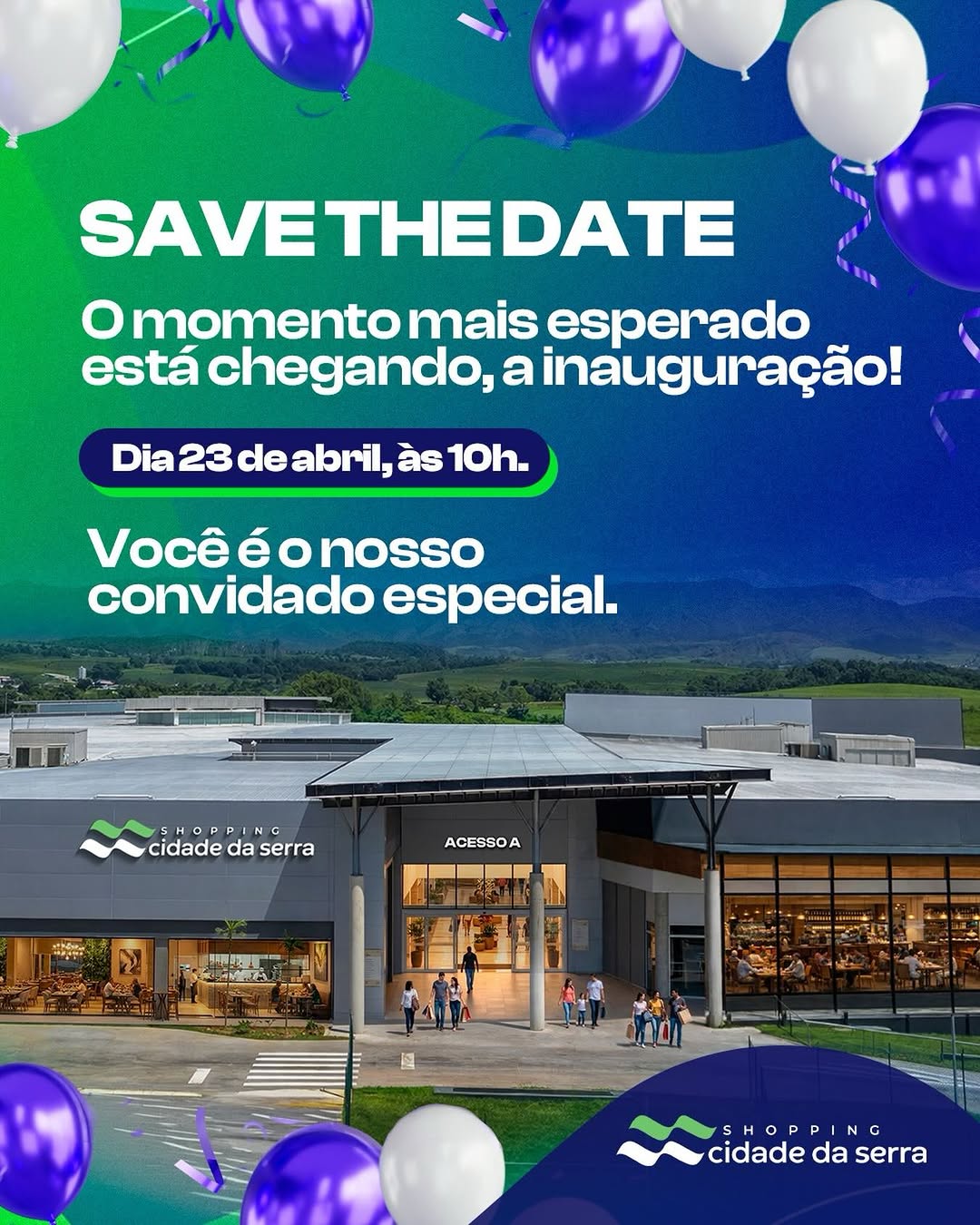 A contagem regressiva para o mais novo marco do comércio regional está chegando ao fim! 🛍️ No dia 23 de abril, às 10h, o Shopping Cidade da Serra abre oficialmente suas portas, trazendo um conceito moderno de lazer, compras e convivência para Lavras e região.