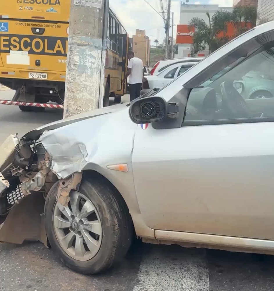 Um ônibus da prefeitura e um automóvel se envolveram em uma colisão na manhã desta segunda-feira (03), em frente à Cross Experience, na Avenida Perimetral.